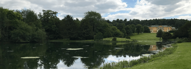 These days visitors approach via a long drive from the main road through the village of West Wycombe, which comes in on the western side of the pleasure grounds. Car parking is in what I’d guess was the walled kitchen garden tucked in a corner just inside the gate. Walking up the drive there are views on the west, now over paddocks and a cricket field [the most modern intrusion of all!] to open country, and on the east through woodland and then the Broad Walk to the lake and parkland beyond.