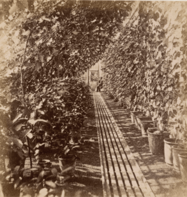 Elsewhere he oversaw the construction of an enormous range of glasshouses which were amongst the most extensive in the UK, – 10 for fruit and 9 for other plants – including vineries, peach and nectarine houses, pineapple pits, fig and tomato houses. They were described in The Book of the Garden in 1853-5, his magnum opus, which remained in print long after his death.
