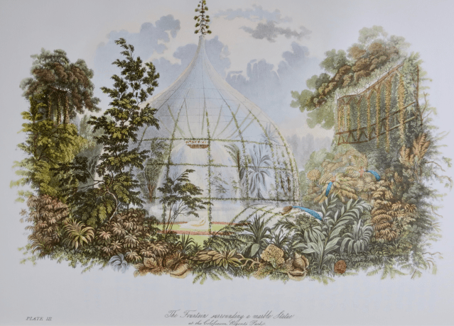 There were plans too to create “one of the finest conservatories in Europe; the magnificent orange trees behind, and the handsome specimens of New Holland plants in front, would have a fine effect.” And while he acknowledged that “much is still wanted to render Laeken a place of much importance in the way of gardens or grounds. …Mr. M’Intosh has been endeavouring to remedy this defect.”