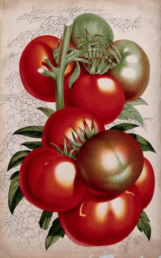 It was on Jerry’s cart tomatoes first appeared in the hamlet… At first sight, the basket of red and yellow fruit attracted Laura’s colour-loving eye. ‘What are those?’ she asked old Jerry. ‘Love-apples, me dear. Love-apples, they be; though some hignorant folks be a callin’ ’em tommytoes. But you don’t want any o’ they—nasty sour things, they be, as only gentry can eat. You have a nice sweet orange wi’ your penny.’ But Laura felt she must taste the love-apples and insisted upon having one.