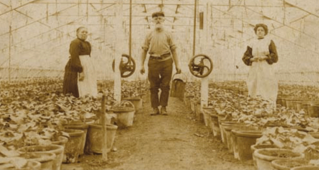 There were of course downsides. Soil-borne diseases like Verticillium Wilt took hold ruining crops. Several treatments such as soaking the soil in carbolic acid or boiling water were tried, but it wasn’t until 1902 that one grower tried sterilising the soil by baking it in an oven! Eventually this led to the idea of soil steaming which, in the early days, was done by digging out the earth from the glasshouse, treating it outside before replacing it. Later, pipework was buried inside each house through which steam could be pumped from enormous boilers.