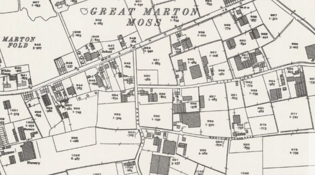 Exactly the same pattern can be seen at Marton Moss. The glasshouse industry collapsed and much of the market gardening land was developed for housing. Development pressure did not affect Guernsey where land use was much more strictly controlled.