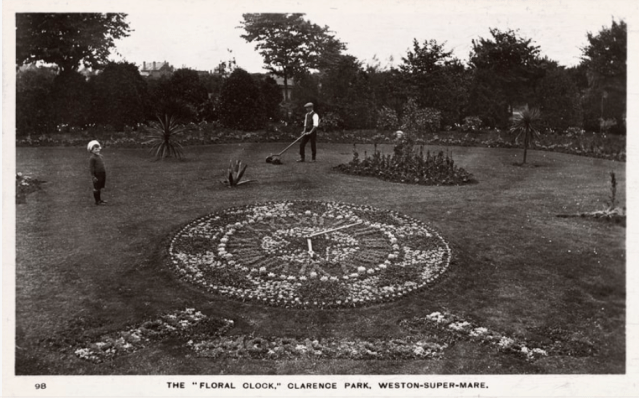 While I was hunting round for information about this floral clock it transpires that Weston once had two! The other was in Clarence Park, and Historic England has a photo from 1913 but where is the clock now? Anyone know?