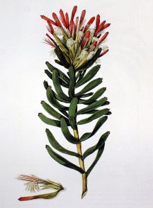 Inevitably this attracted the attention of plant collectors from other western countries – foremost amongst them Sir Joseph Banks who had called at Cape Town in 1771 on his return voyage with Captain Cook’s expedition which had “discovered” Australia. He had seen the unique character and extraordinary richness of the Cape’s flora and when in 1772 Cook was sent on his second expedition to the Pacific, he was accompanied by Francis Masson from the royal gardens at Kew who got off at Cape Town to go plant hunting. [I’ve written about Masson’s exploration is an earlier post. Mary Eleanor Bowes of last week’s Gibside post also sent out William Paterson to collect specifically for her.]