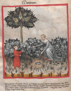 Horehound too has surprising qualities, although perhaps not ones that you’d like to test. So “if some evil stepmothers mix up poisonous substances and slip them into your drink, or deceptively load lethal wolfsbane into your food, then quickly down a draught of the antidote horehound and you’ll be soon be rid of the anticipated dangers”