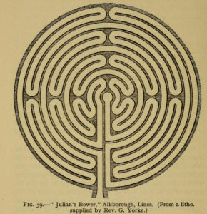But why Julian’s Bower, especially when there were according to the 18th-century antiquary William Stukeley  two other  mazes of the same/similar name in Lincolnshire, one  at Horncastle,  and another in nearby Louth known at “Gelyan Bower”.