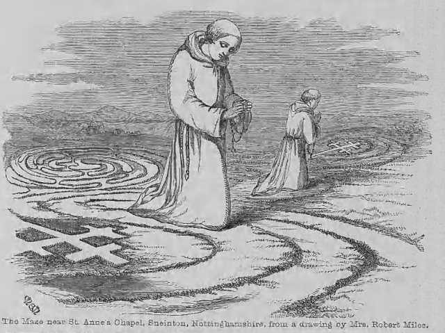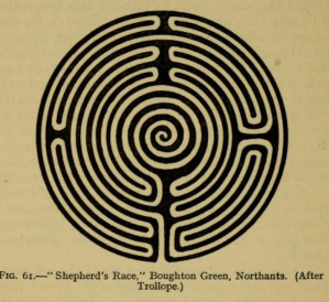 Another possibility is that they were for games or races. There’s a reference  from as early as 1353, for example, for the “treading” of a “Shepherd Ring” near Boughton Green, Northamptonshire, during the annual June Fair, while there was another “Shepherd’s Race” just outside Nottingham.    These were both turf mazes that local legend suggests were cut by shepherds as a sort of exercise ground, but sadly both are now gone.