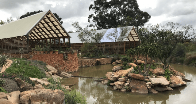 Next door is the Bee Garden, which is kept locked for obvious reasons but has spy holes through the walls and door. Inside are a range of different hives which are explained in a short youtube video by the Babylonstoren’s entomologist Arné Stander