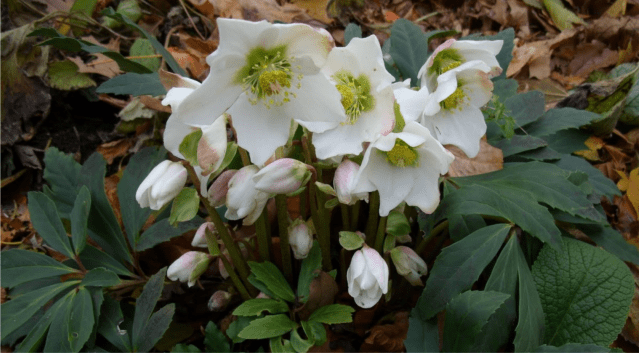 In both stories of course  the Christmas Rose is Helleborus niger or the black hellebore. This is one of about  15-20 species of hellebores depending on who you read. They are in the the Ranunculaceae or wider buttercup family and found right across Eurasia, with their main centres of distribution  in the Balkans.  Generally growing in lightly shaded  woodland,  they tend seed prolifically which has led to  considerable variability within each species. The name of the black hellebore  is confusing because its flowers are not black but white, sometimes with a touch of green, or occasionally pink.  In fact  its name derives from the colour of its roots.