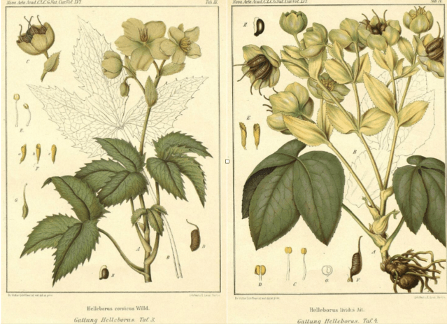 H. Argutifolius and H livid from Schiffner’s , Monographia Hellebororum
