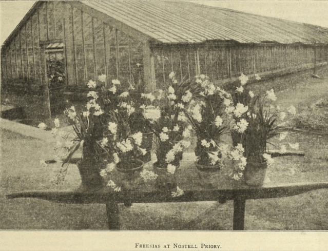 The first Lord St Oswald died in 1893 and was succeeded by his son, yet another Rowland. The next generations left little mark on Nostell although at first things seem to have continued well, with an article in The Gardening World for January 1900 about growing freesias at Nostell by the new, but very experienced head gardener, John Eastor. Eastor and his career were the subject of another article in October that year. He became a regular contributor to the gardening press, and a short obituary was later published in Gardener’s Chronicle in 1912..