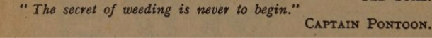 “We propose to take you right through all the essential parts of gardening, sparing you nothing, not even succulents. And if at any point your love falters; if, for instance you failed to adore all Mr Knatchbull Twee’s lovely Thoughts or takes sides with Captain Pontoon against Dean Nuisance you will know (alas) that you are unworthy of The Garden Beautiful, a weed upon the face fair of the Earth, a human plantain, and had better stay indoors and hide your head in a seedsman’s catalogue forever…. On the other hand if you come through with a riot of flying colours you will know that you are a certified snobgoblinatious gardener in fact The Real Thing.”