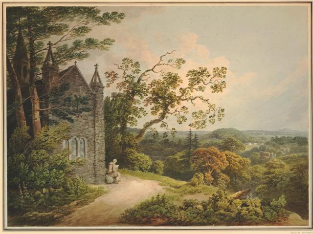 This all tied in very nicely with the revival of interest in Britain’s mediaeval heritage, and the fashion for Gothic architecture. Ancient monastic ruins became popular subjects for painters, and even inspired new garden buildings. While most of these were usually mock abbeys or priories there was the occasional faux convent too, notably the one at Stourhead built for Henry Hoare in 1765.