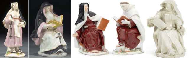 Even when monarchs like Charles I and Charles II married Catholic princesses their freedom to worship freely was effectively limited to their own household, although both Henrietta Maria and Catherine of Braganza supported small groups of nuns in secret. After the Restoration legal restrictions were placed on Catholics holding public office or even graduating from university. Yet it’s clear from some surviving paintings, ceramics and even toys, that the idea of convent life and/or of being a nun did not go away for some women.