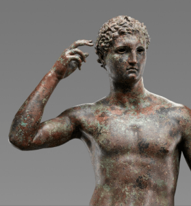 Floral headdresses and crowns were also associated with religious festivals, notably the Floralia dedicated to Flora the goddess of flowers and the spring, who is almost always depicted wearing a flower crown. I couldn’t resist adding the image below by Alma-Tadema who, as usual, rather went over the top in his interpretation of such a spring festival, where everyone is wearing a floral headdress of some sort.