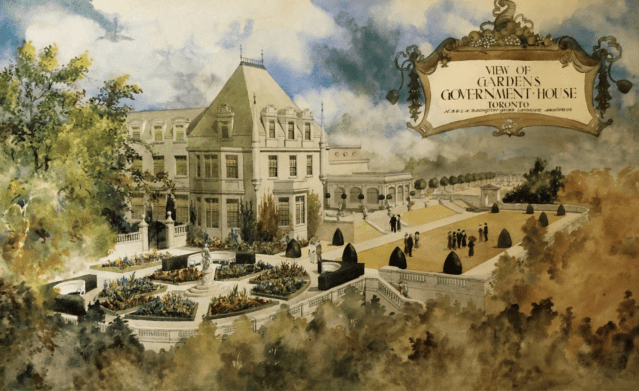 In 1915 the Dunington-Grubbs won another prestigious commission: the landscaping of Chorley Park, the official residence of the Lt-Govenor of Ontario. The French chateau style mansion was immediately controversial because it was huge and very expensive to build. An American designer Charles Leavitt had produced a proposal for the landscaping but these were rejected as too costly and Lorrie and Howard were commissioned to produce new ones. These too were rejected as too expensive during wartime and so they resorted to something much cheaper but which nonetheless were hailed as “the finest in the Dominion”. In fact Chorley Park was soon abandoned to become a hospital, then police HQ and later a refugee centre before being demolished. Virtually all their work was swept away and the site is now a natural park.