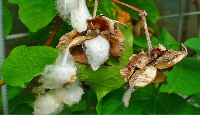 The reality underlying all these myths was of course the plant Gossypium better known by its product: Cotton. There are four main sorts, two of which would have been known to the classical world. Levant cotton, [Gossypium herbaceum] which is native to Arabia, and also sub-Saharan Africa, and tree cotton [Gossypium arboreum], which comes mainly from the Indian subcontinent where it was bought into cultivation for textiles around 4000 years ago. It grows between one to two metres in height and when you look at the pods you can see how the legend arose, especially when the description of the plant was passed on from person to person to person to person getting gently modified in the process so that the idea of wool growing on trees could be conflated with sheep growing on trees.