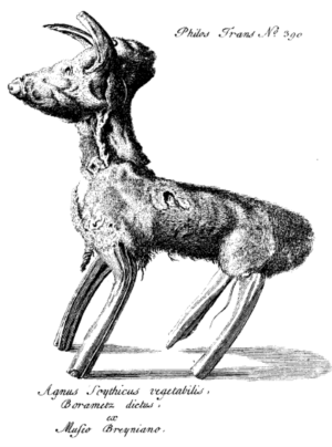 I’d be surprised if you didn’t work it out. Not many plants grow animals instead of leaves and flowers. Yet that bizarre hybrid of plant and animal was widely accepted as being real and not mythical, partly because of course, at the root of the legend there was a smidgeon of truth.