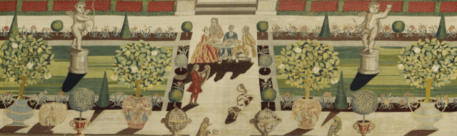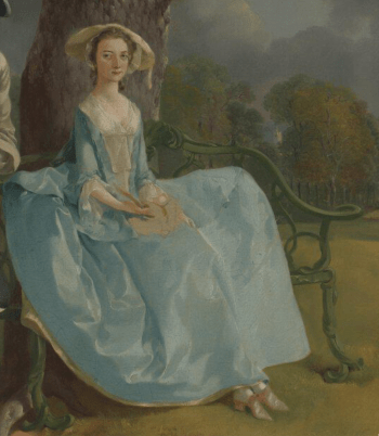Mrs Andrews in the garden at Auberies, a detail from Gainsborough’s Mr & Mrs Andrews. But what is she holding? and why was the portrait painted outside? All may be revealed on the post!