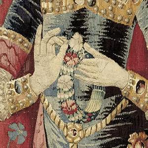 Andre Arnaud suggested in 1981 that the lady was none other than Mary, the sister of Henry VIII, and, for a short few months, the wife of Louis XII of France. After her husband’s death she was to marry Charles Brandon, Duke of Sussex, without Henry’s permission. Arnaud suggests that various elements in the tapestries tell her story. This theory was later outlined on-line by Jacky Lorette.