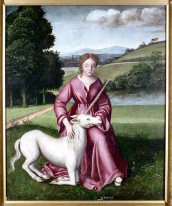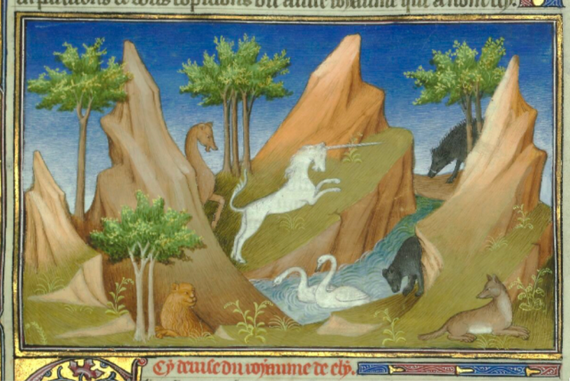 Although unicorns found no place in the classic literature of Greece or Rome they continue to make the occasional appearance in various forms in travellers tales from then on, until by the Middle Ages they were well-established in popular culture. They were not, however, always seen as the friendly creature of modern children’s books and films, but rather as creatures with several divergent, often contradictory traits.