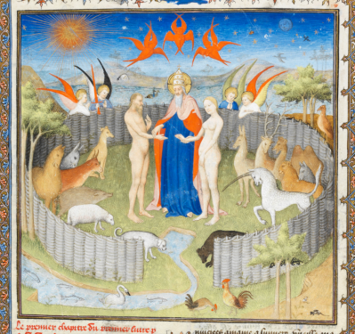 Unicorns were thought to be elusive and live in forests and woods. They were best known for their supposed ferocity, their speed and invincibility, and for the therapeutic property of their horn. Contemporary texts described this as having the power to cure the sick, and in particular to detoxify poisoned water. This purification was said to be akin to Moses sweetening the water the Israelites found in the desert during the Exodus. More significantly it was thought to be like Christ’s own purification of the world after it had been corrupted by Adam and Eve’s sin in the Garden of Eden. For that reason some images of Eden even include a unicorn amongst the creatures that live in the garden alongside Adam and Eve.