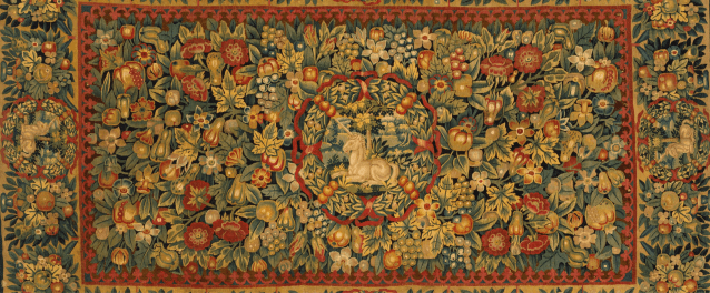 The Unicorn Tapestries, were first documented in 1680 in the possession of the de La Rochefoucauld family in Paris. Later they were moved to their chateau at Verteuil, in the Charente where they were looted during the Revolution and used in the potager to protect fruit and vegetables during the winter. They were saved and then restored in the 1850s before being sold to John Rockefeller in 1923. He later donated them to the Metropolitan Museum in New York where they hang in the Cloister Gallery.