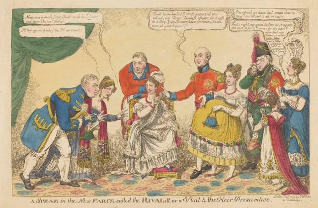 The royal family was undergoing a crisis because the Prince Regent’s only child, Princess Charlotte, had died a few months earlier in 1817, leaving the succession going to his four younger brothers who did not have a single legitimate heir between them. This threat to the dynasty created an urgent need for William and his brothers to find suitable wives and produce babies. The next brother in line after William, Edward Duke of Kent, was also lined up with an “instant” wife and married at Kew Palace on the same day to another princess from a minor German state, Victoria of Saxe-Coburg-Saalfeld and it was their child Victoria who eventually became the longed-for heir.