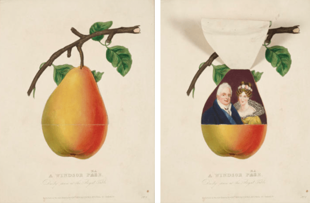 A Windsor Pair/Pear. A novelty print with a movable flap. containing a portrait of William and Adelaide.