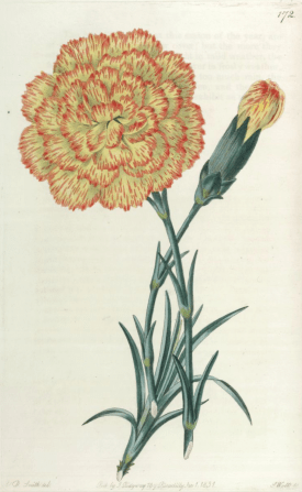 One gardener she would certainly have known is George IV’s gardener at Windsor, John Gould [who was incidentally the father of John Gould the famous ornithologist]. He had regularly exhibited at shows, especially local ones, usually walking away with prizes. He was renowned for carnations and pinks which were extremely popular at the time. Although Gould died in December 1829 just before William attained the throne the tradition of growing such flowers at Windsor continued under Adelaide and she maintained and enhanced the carnation collection buying in new stock from Thomas Hogg, a prominent London nurseryman who was later to dedicate a book to her.
