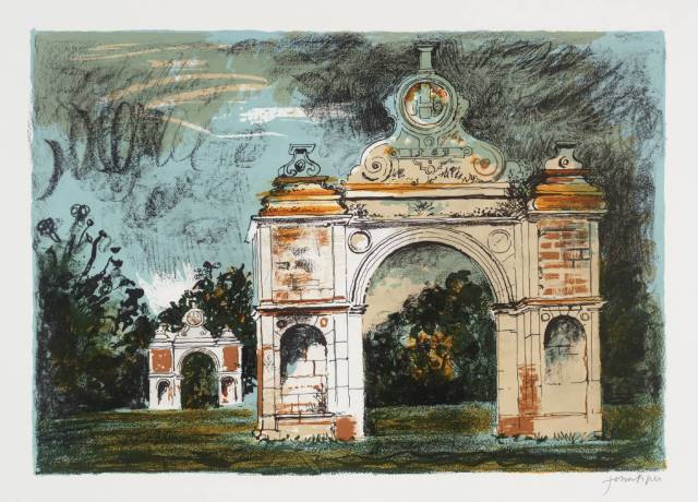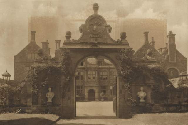 The gatehouse is gone but the two original impressive archways still survive, and bear the date 1583. Their designs were probably inspired by the triumphal arches in Serlio’s Archittura first published between 1537 and 1551.