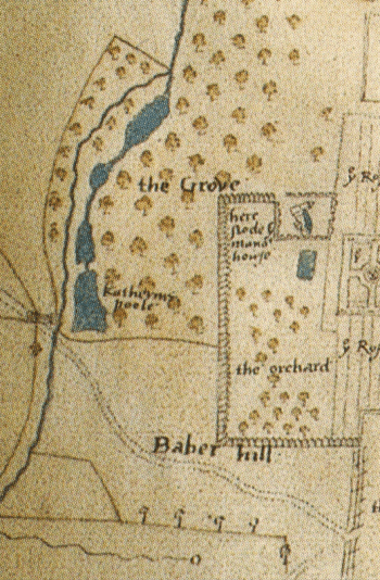 A new walled court had been constructed behind the house and the former compartments had been turned into an orchard. Treswell also shows close palisade fencing round almost the whole site, as part of the creation of a new deer park.