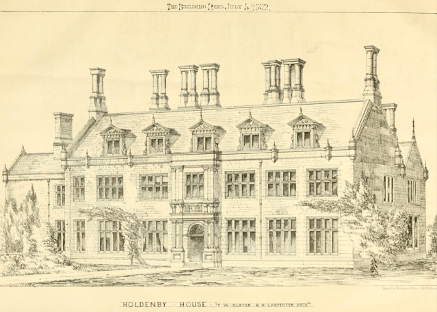 This led to a nice story about architectural criticism. Building News was scathing about the architects Slater and Carpenter “pretending to carry us back to the days of the Tudors, with a porch built up with pilasters one above another like acrobats performing in the circus; dormers with pediments, like porkpie hats flattened down…. Eclecticism! Eclecticism! What horrors have not ere this been perpetrated in thy euphonious name!”