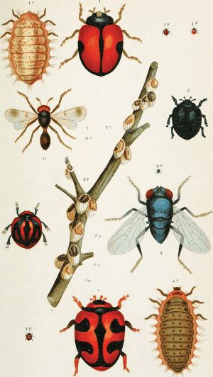 However even then one other insect was recognised as a being a super-predator: “the lady-bird or lady-cow the favourite of our childhood.” The value of ladybirds was already clear to Kirby and Spence. They were known to be moved around by gardeners and farmers and when, for example, hop-fields were attacked by aphids the owners employed boys to scare away the birds that were eating the ladybirds.By the 1840s there were experiments across Europe notably by a Professor Boisgiraud of Poitiers in France who collected and translocated insect predators to his garden to control gypsy moth larvae and earwigs. Thats fine on a local scale but the risks of moving insects round on a larger scale soon became apparent, notably in the USA where by the mid 19thc accidentally imported European insect pests began to ravage gardens and fields and were uncontrollable because, unlike in Europe, they had no predators. The decision was made to try and import some of these natural predators with one entomologist arguing that as “Accident has furnished us with the ban; science must furnish us with the remedy… so … wherever a Noxious European Insect becomes accidentally domiciled among us, we should at once import the parasites and Cannibals that prey upon it at home.’ [Benjamin Walsh, state entomologist for mIllinois 1866]