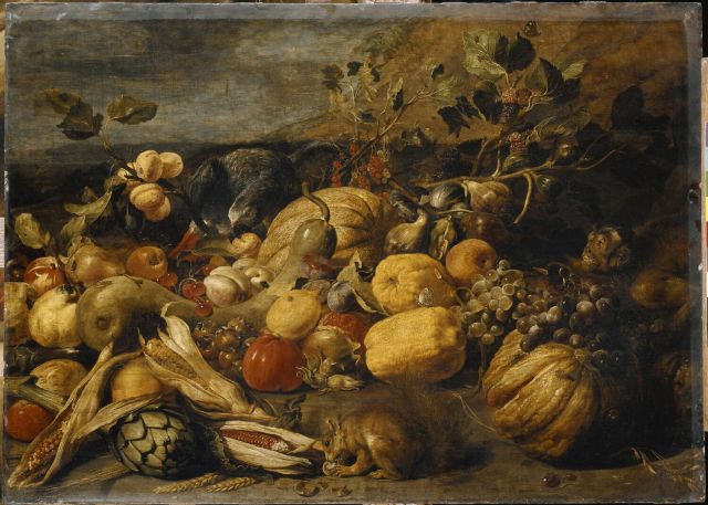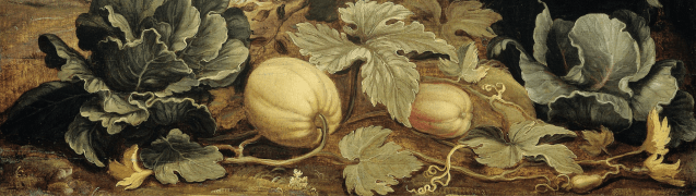 What perhaps is equally surprising is that when squash first arrived in Western Europe they didn’t catch on as a food crop, despite being known as part of the diet of native Americans. It’s also worth remembering that much the same is true of potatoes, tomatoes and maize. They rarely appear in early cookbooks and when, from the later 16thc there is evidence of pumpkins being eaten, it’s mainly by peasants rather than the elite. They were however grown for use in medicine and as ornamentals hence their appearance in still lifes.