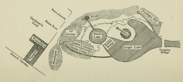 But book reading wasn’t enough. So a few months later in January 1902, Miss Lamont returned to Versailles. Her intention was to “to make a plan of the paths and the buildings; for the guide-books spoke of the Temple de l’Amour and the Belvedere, and I thought one of them might prove to be our kiosk.”