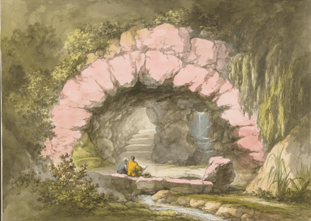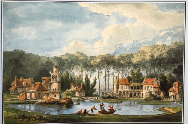 The eerie sensation returned when she decided to visit the dairy in the Hameau, Marie Antoinette’s “play village”. There she noticed a cart being filled with sticks by two labourers, wearing “tunics and capes with pointed hoods of bright colours, a sort of terracotta red and deep blue.” But when she turned back after to look briefly at the Hameau “men and cart were completely out of sight…I could not see any trace of them on the ground” despite her being able to see a long way in every direction. “Their total disappearance in so short a time seemed unaccountable. This made her uncomfortable but she still made her way to the queen’s dairy only to find it closed and shuttered .
