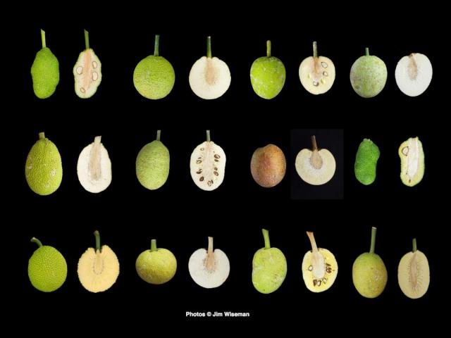 That discovery fits with what has also been emerging from archaeological work about how the Pacific was colonised. The Pacific Islands were amongst the last places on Earth to be settled by humans. It’s thought that migration began in Taiwan then through the Philippines reaching New Guinea c 3-4000 year ago and as they island-hopped further into the ocean the pioneers probably carried provisions with them including chickens, yams and breadfruit and its ancestor, breadnut. However breadnut seeds are not viable for very long but the plant can be easily propagated vegetatively, a process which is thought to be slowly led to a mutation into seedless sterile forms.