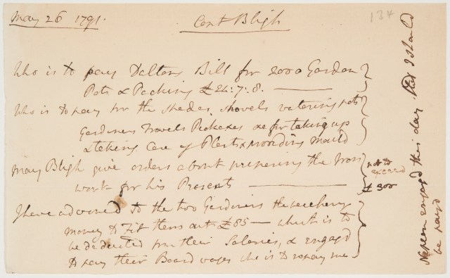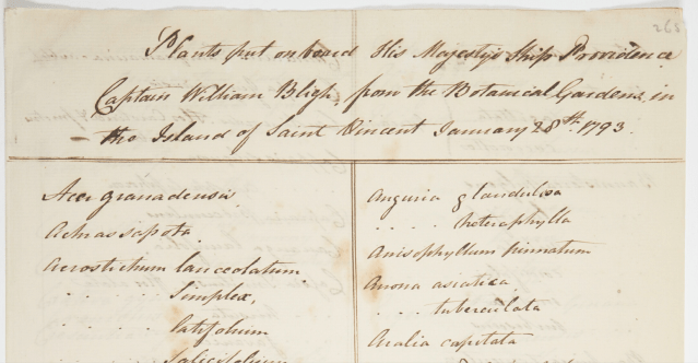 You’d think that after that and his court-martial for losing Bounty would, despite his acquittal, have been the end of Bligh and his breadfruit connection. Far from it. In 1791 he set off again this time as captain of HMS Providence , accompanied by HMS Assistant to Tahiti to try again. A lot of evidence survives for the voyage in the State Library of New South Wales with some of them, including the ship’s logs written by Bligh, now digitised and freely available on-line.