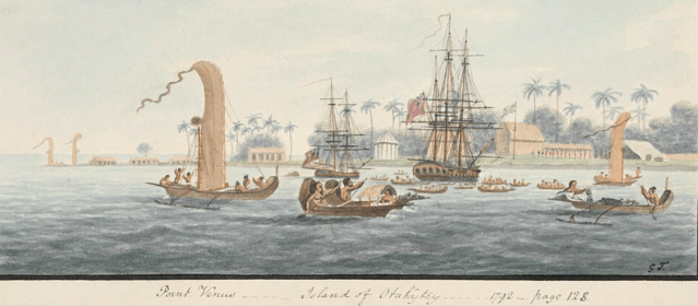HMS ‘Resolution’ and ‘Discovery’ in Tahiti, John Cleveley the younger (style of)