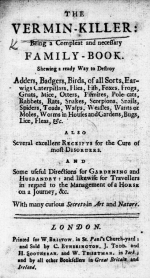 Later, Joseph Blagrave even includes “destroying moles” part of the long title of his 1685 book New additions to the art of husbandry. He takes several pages to describe in detail how to go about it, telling readers that in “the first place you must have a Paddle, which must be put upon a Stick five or six feet long”, then in the morning go round your garden looking for the mole’s “trenches” and “tread them down but not too hard”. Look around now for new molehills and tread down the trench that leads to that.
