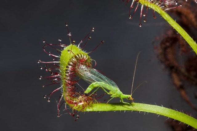 Over the next ten years or more he carried experiments which showed that the sundew captured not only small things such as flies but sometimes larger ones like butterflies and dragonflies. He already knew that “many plants cause the death of insects, for instance the sticky buds of the horse-chestnut without thereby receiving any advantage; but it was soon evident that Drosera was excellently adapted for the special purpose of catching insects.”