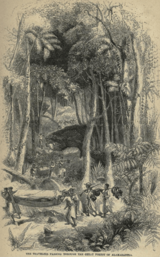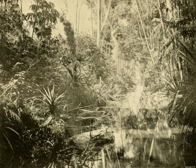 Leche had travelled to Madagascar and encountered the Mkodi “a very primitive race” who have “no religion beyond that of the awful reverence which they pay to the sacred tree.” He persuades them to take him to see it in “the heart of the forbidding and seemingly impenetrable forest.” There “the stalks of the tall trees rose like columns, the vines hanging down from them in festoons, and their roots running over the ground in every direction, making walking difficult.” The Mkodi carried javelins in case they encountered cheetahs or fierce buffalo when suddenly they “began to cry, Tepe! Tepe! and …in a bare spot … was the most singular of trees.”
