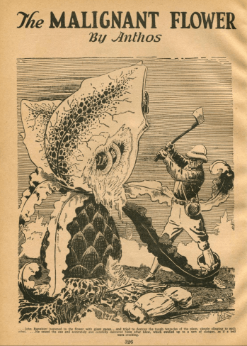 Slightly later we have a similar sounding plant but this time on a remote island. Published in Black Cat magazine in Sept 1896, The Guardian of Mystery Island is a much longer story and one of the better reads of all these weird stories. It’s told by Edmond Nolcini and includes superstitious fishermen, pirate treasure, a tumbledown house, a mysterious old woman who disappears and of course “a devil-plant”. Sadly it’s unillustrated.