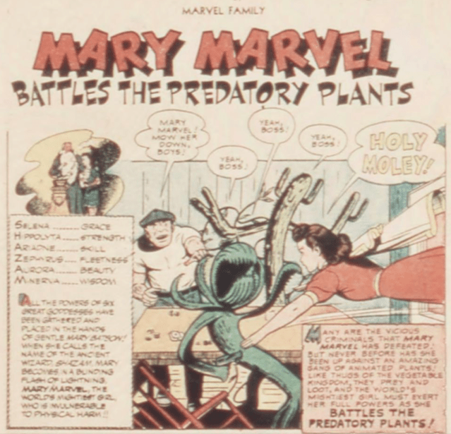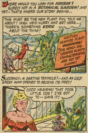 For a lighter touch Plant Monsters in fantasy and sci-fi comics are really well investigated by Dark World Quarterly, who have produced several well-illustrated blog posts including The Beast Plants; Plant Monsters in The House of Mystery; Plant Monsters in the 1950s; Even More Plant Monsters in Comics!; and Plant Monsters of ACG ; but there are several more too! Another good collection of well-researched blogposts – especially those published on Tentacle Tuesdays – can be found at whosoutthere .