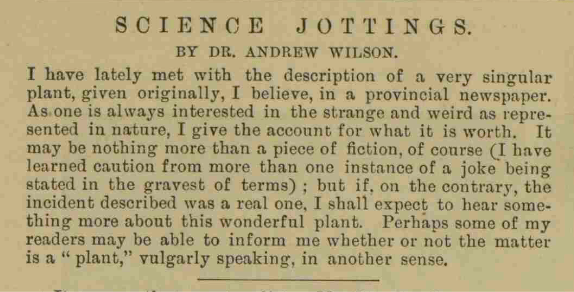 That coverage elicited further stories from readers. One about a “snake-tree” in Mexico, which was seen by “a traveller” to snatch and suck the life blood from a bird. To see how this was possible he then “fed” the tree with chickens and saw that it had suckers on its branches rather like those on an octopus’s tentacles. However Dr Wilson’s scepticism continued…