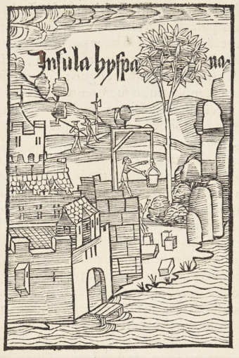 I suggest where the was for two reasons. One was expense. Woodblocks are expensive to produce and a printer would re-use them wherever possible. So the woodcut images that illustrate the early Columbus accounts are simply “borrowed” from other books.