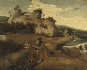 Mostaert knew how to do this sort of work thoroughly and so, the scenery in the picture was filtered through that knowledge down to the cows, sheep and rabbits inhabiting the fields. Only the monkeys, peacock and parrots could be considered exotic, but even they were already well-known in Europe.