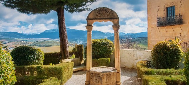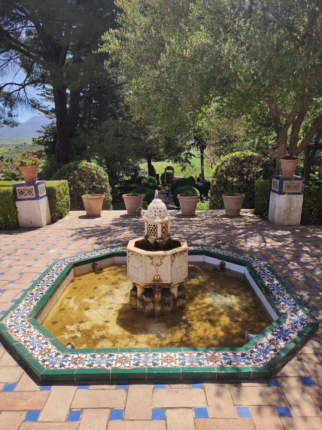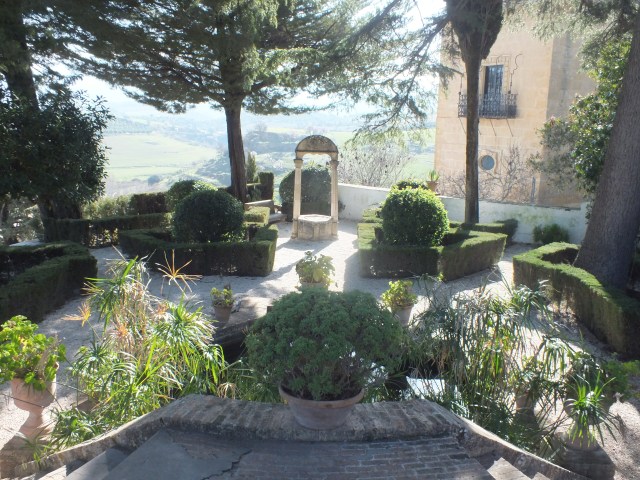 After the Duchess’s death in 1937 I presume the house passed to her only daughter but certainly by 1996 it was in the hands of the municipality and in a dilapidated state. They sold it to a German hotelier Jochen Knie. He opened the gardens the following year and promised to restore the Casa and open a 5 star hotel although it was not in a zone where this would normally be allowed under Spanish planning law. Indeed it transpires that the town council did not even have planning powers in such a case as these rested with the regional authority. A stalemate ensued followed by 14 years of legal disputes with claim and counterclaim, until in 2010 it was thought a solution had been reached. Since the hotel hadn’t opened when I was there in 2018 and doesn’t appear to have opened since I can only assume that the scheme hasn’t gone ahead although there are signs on the building saying renovation is underway. Apparently the dispute is still rumbling on although I’ve searched in vain in the English-language press for more definitive news. For more on the dispute see this 2010 article on Ronda Today.