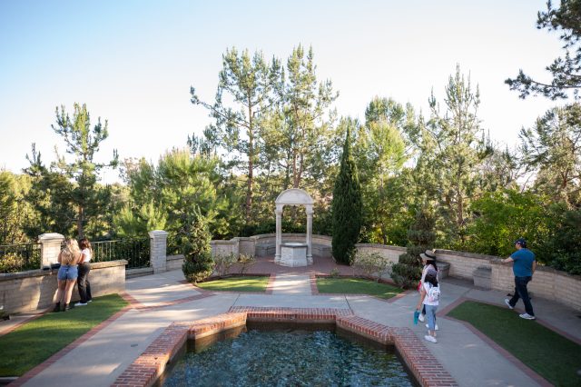 The fountn ain back on the upper terrace